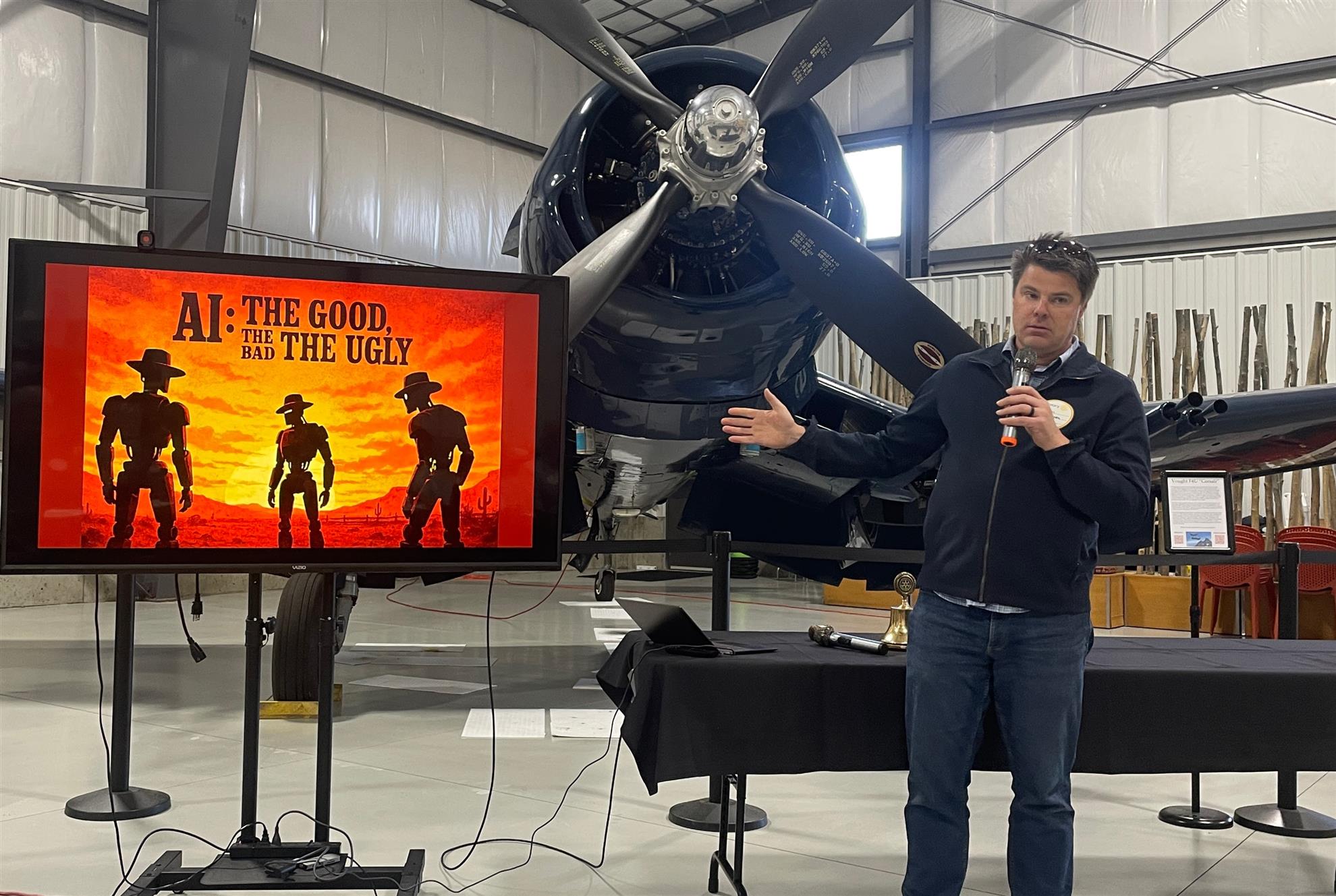 Rotary would like to thank you, Sam, for your insightful and engaging presentation, “AI: The Good, the Bad, and the Ugly.” Your ability to break down a complex and rapidly changing topic into clear, relatable ideas gave our members plenty to think about and talk about long after the meeting ended.